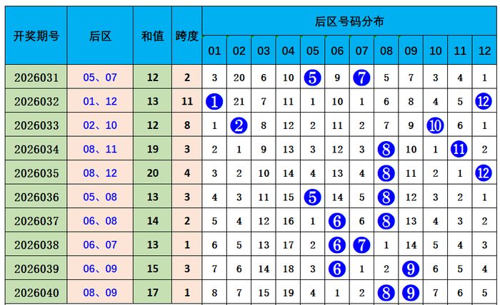 大乐透后区综合分析: